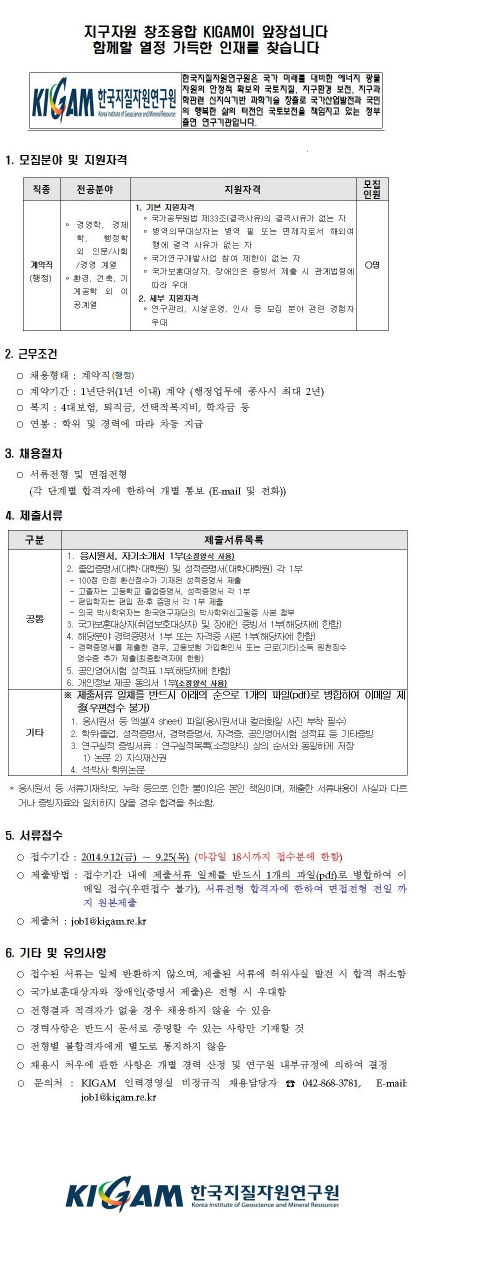2014년 제1차 기간제근로자(계약직) 채용 공고